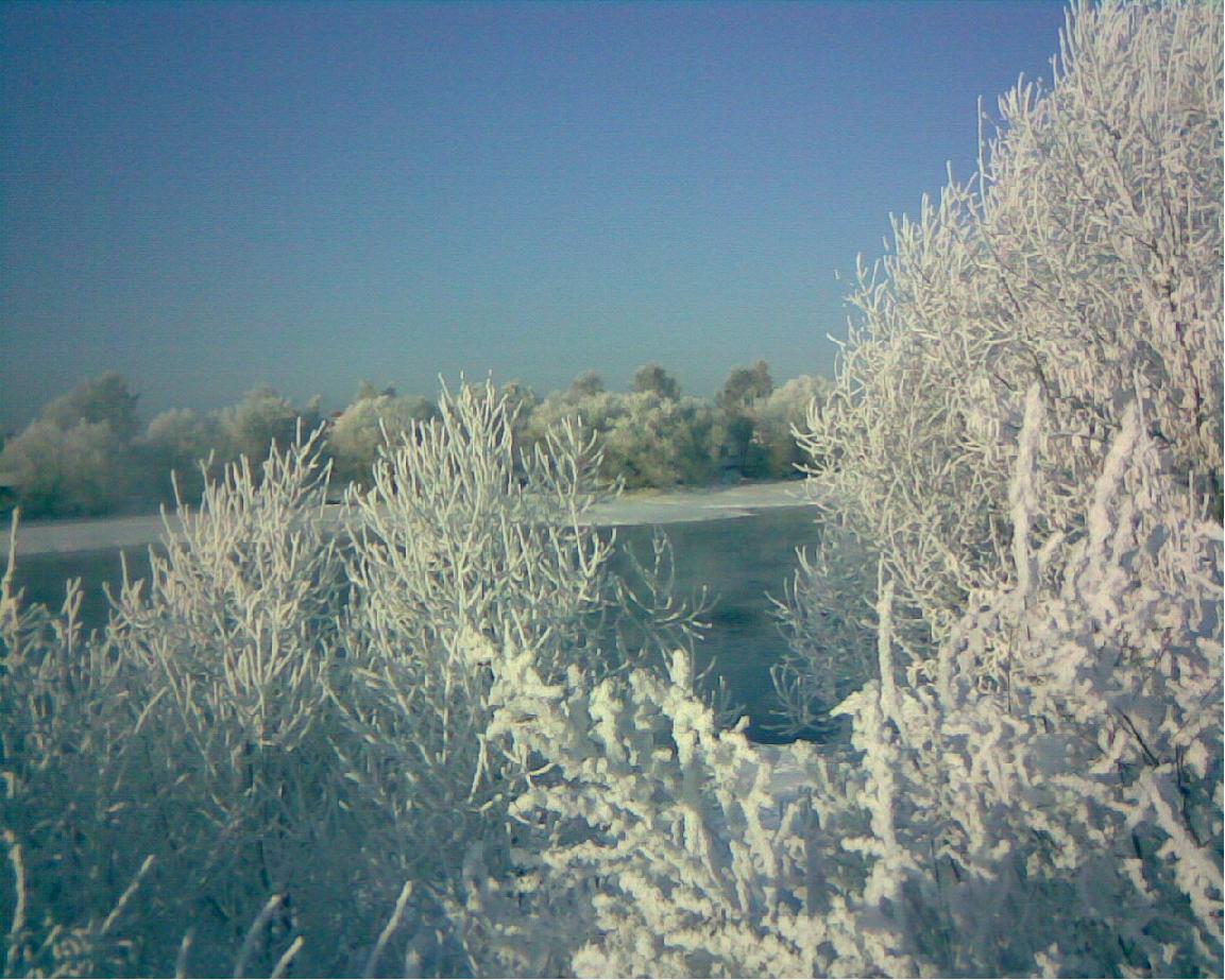 Парочка утрених снимков по дороге к склону, у Москва реки, температура воздуха -24, Иней ...